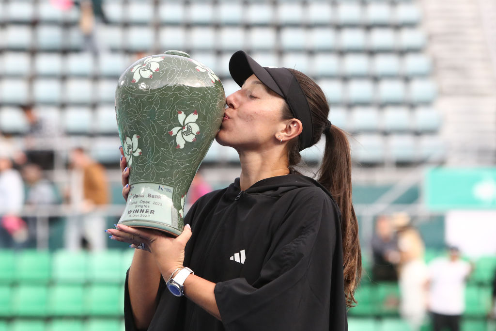 Jessica Pegula con il trofeo vinto a Seoul nel 2023 (Getty Images)