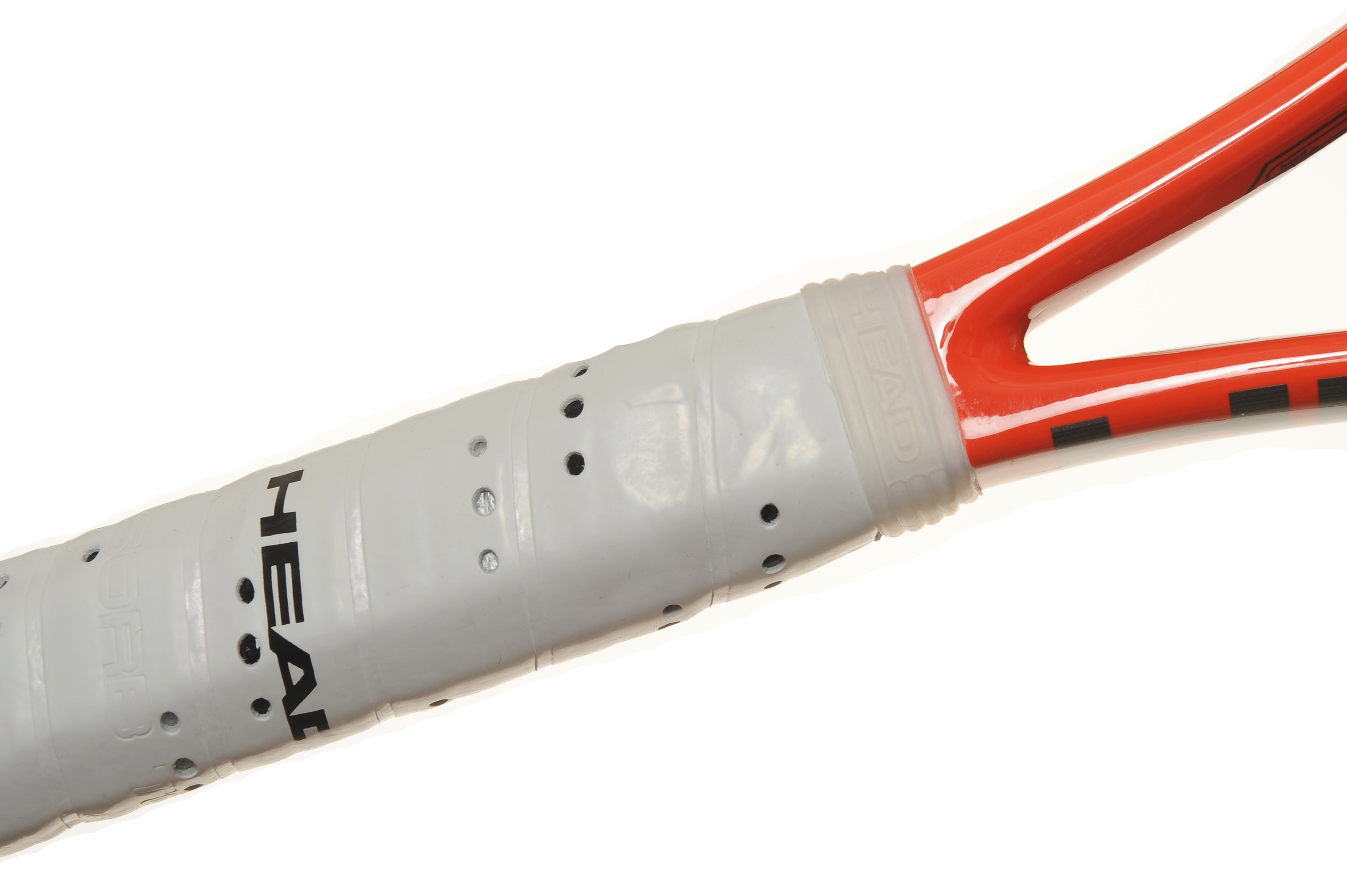 Grip (misura del): La misura dell’impugnatura è tradizionalmente indicata negli Usa da 4 1/8 a 4-5/8, quello che normalmente in Europa si traduce in numero semplici da 1 a 5. Detto immediatamente che la più comune oggi è la n. 3, esiste un criterio per calcolare correttamente la propria. Impugnando la racchetta con la classica presa “eastern” di diritto (che si ottiene semplicemente collocando la racchetta a terra e afferendola all’impugnatura per sollevarla) si deve riuscire a inserire il dito indice della mano libera, tra il palmo della mano che impugna e il dito medio della stessa.