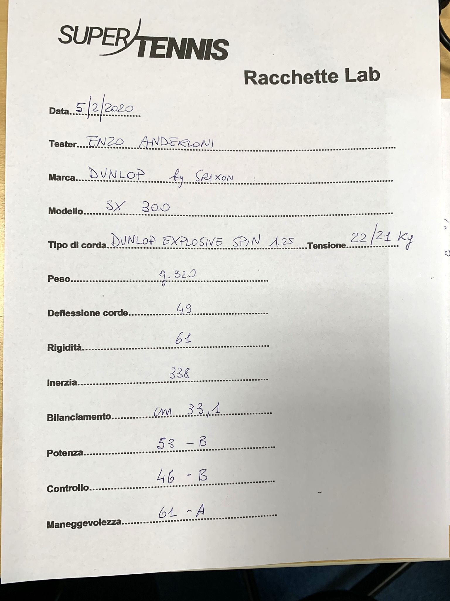 Il Lab (I dati si riferiscono a un telaio incordato con Dunlop Spin Explosive calibro 1,25 alla tensione di 22-21 kg)