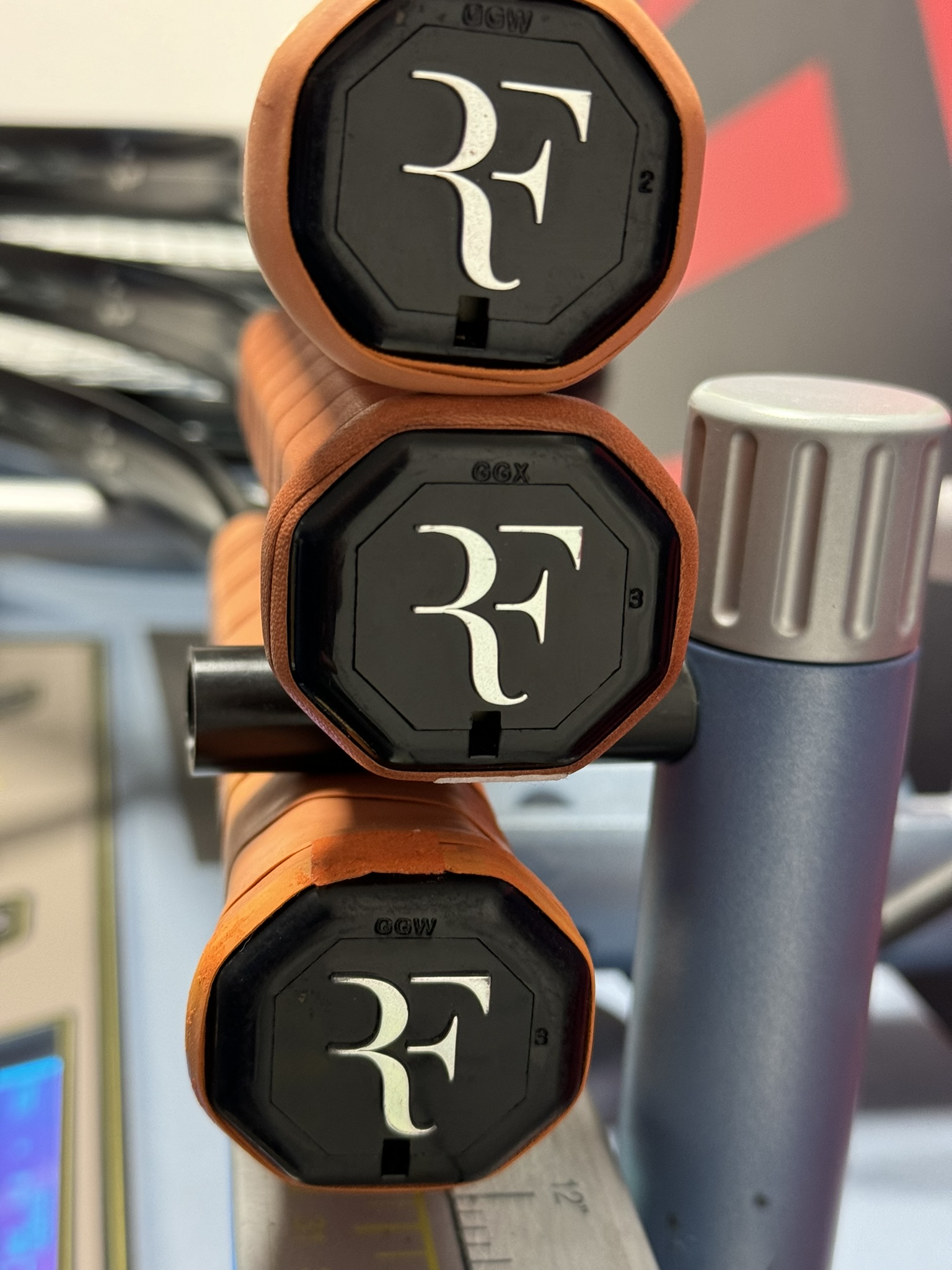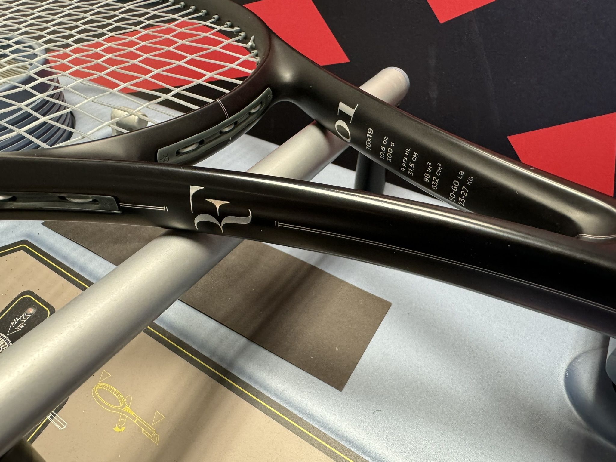 Il tocco di classe arriva dall’ampia delega che Wilson gli ha concesso sullo sviluppo del design, consentendogli addirittura di apporre la sigla RF sul tacco (come dicevamo in precedenza) al posto della classiche “W” di Wilson. Ne è uscita una racchetta proprio come piace a lui, una racchetta nera con sottili grafiche argentee e il bumper grigio scuro. Una racchetta vestita con lo smoking. E per rimanere sul classico, l’impugnatura è in cuoio naturale (nella sua RF 01 Pro) o sintetica color cuoio (ma sempre con le iniziali stampigliate).