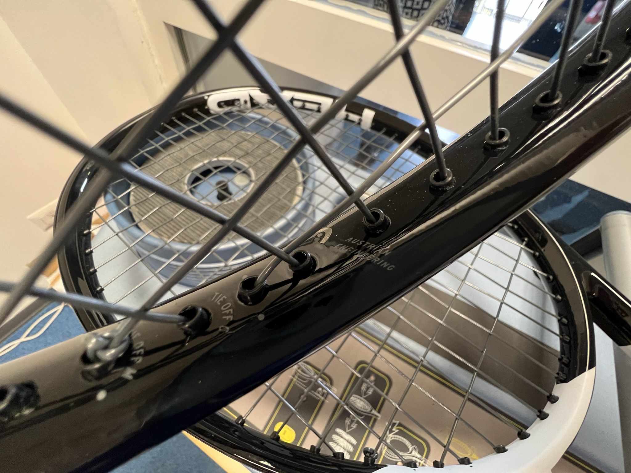 Come abitudine abbiamo voluto saggiarne le caratteristiche in un confronto “interno”: versione Pro quella scelta da Djokovic contro versione MP, preferita da Sinner. Entrambe mantengo la classica livrea bianca e nera ma a posizioni invertite: nella versione 2022 impugnatura e base del telaio sono bianche e l’ovale diventa nero lucido, con le minuscole scritte che riportano i dati tecnici su un lato, all’esterno.