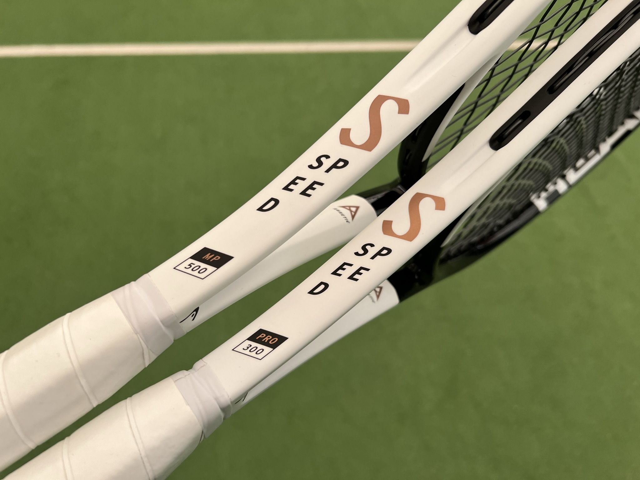 Tra il due telai, già nelle precedenti edizioni, ci sono tante piccole differenze ma quella fondamentale è il pattern d’incordatura. Speed Pro ce l’ha più fitto (18x20) rispetto a MP (16x19) e questo crea già una grand differenza. L’obbiettivo ora è capire che tipo di feeling offrono i due modelli sul campo e aiutare che è interessato ad utilizzarli a capire quale è il più adatto alle proprie caratteristiche.