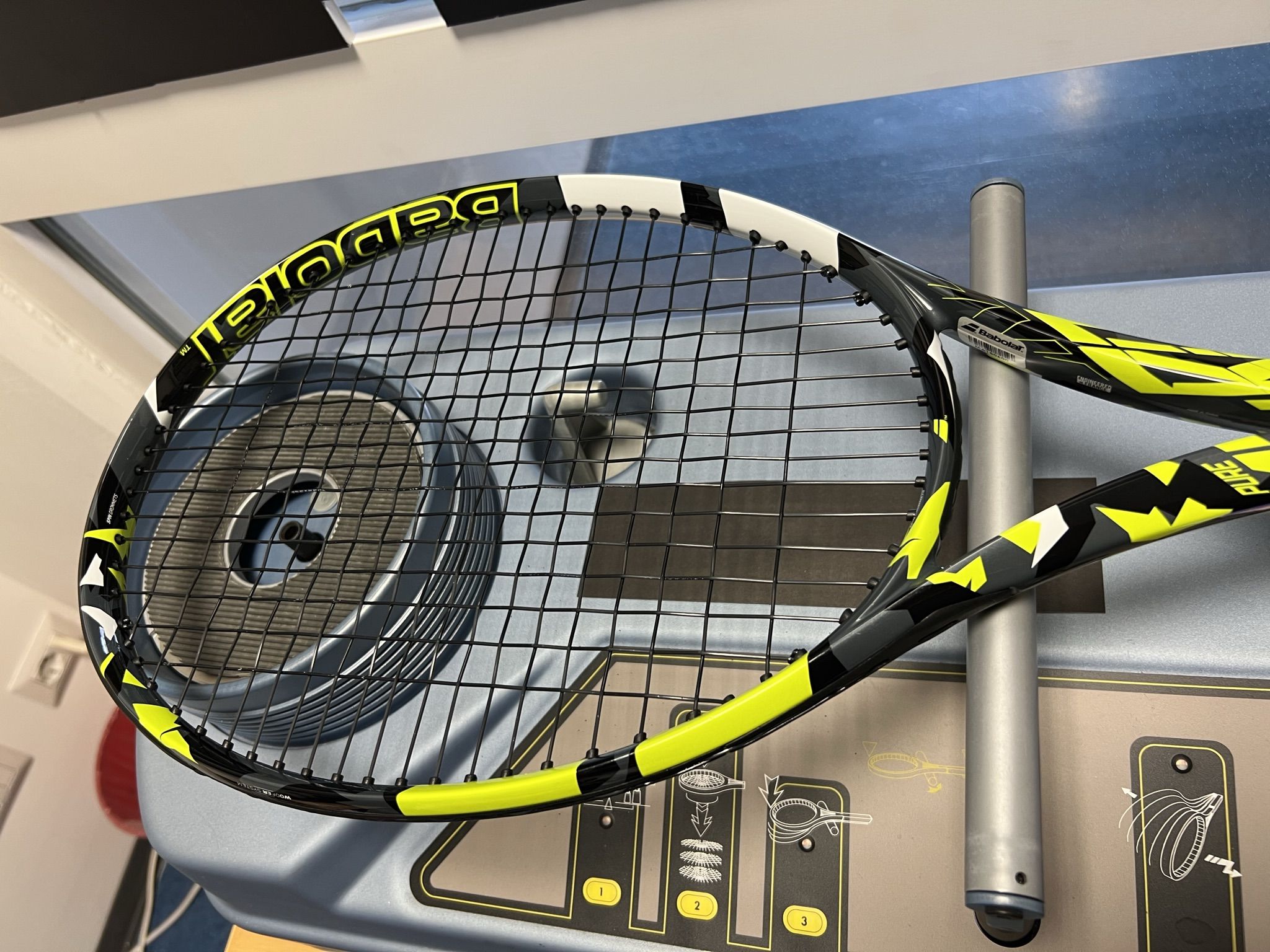 Prima di procedere con le misurazioni e andare sul campo non si può non sottolineare la notevole svolta sul piano cromatico: quella che per anni è stata riconoscibile come una racchetta gialla diventa una racchetta con elementi grafici gialli (il nome all’all’altezza del cuore, le due bande laterali e il logo Babolat all’interno dell’ovale) su una base grigio-nero-bianca, quasi un camouflage invernale. Di sicuro una veste che innova fortemente l’immagine di questo attrezzo classico riducendone un pochino l’immediata riconoscibilità. Segno che la volontà di innovazione ha prevalso rispetto al riferimento agli allori passati, ora che la generazione di Nadal sta passando il testimone agli Auger-Aliassime e ai Rune.