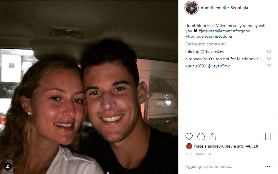L'amore ai tempi di Instagram è anche questo. L'amore nel mondo del tennis è anche questo. Sì, perché i due innamorati della foto si chiamano Dominic Thiem e Kiki Mladenovic, e i messaggi sono quelli che hanno diffuso a San Valentino l'anno scorso. È una delle coppie tennistiche più in vista, quando giocano nello stesso torneo Dominic non manca mai alle partite di Kiki, nel box insieme alla mamma-coach e al fratello ex calciatore, e Kiki a quelle di lui.