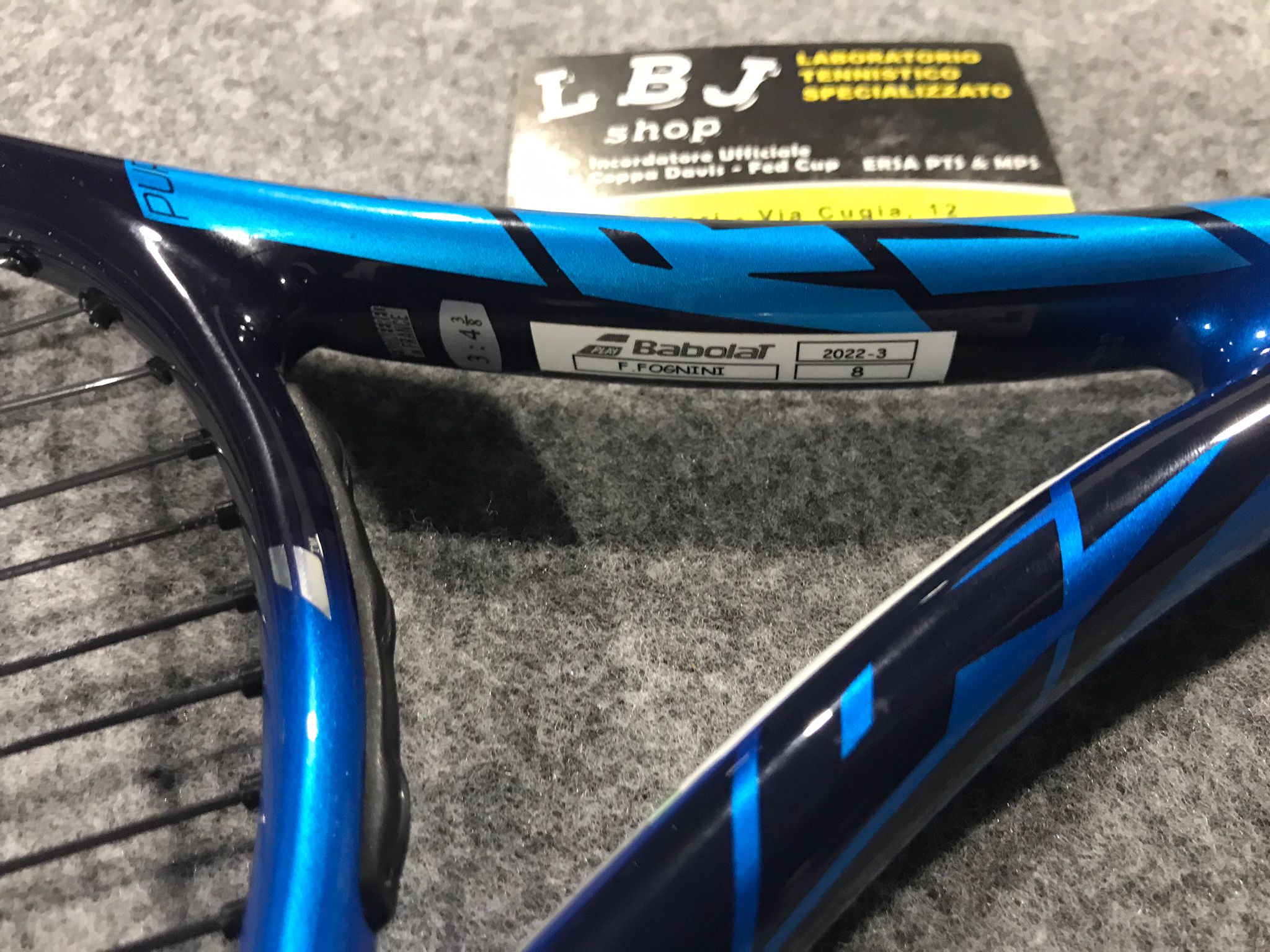 La racchetta di Fabio Fognini – Fognini, fedele alla sua Babolat Pure Drive del 2007 incorda sempre con sintetico monofilamento Babolat Rpm Blast, calibro 1,30 mm. Pe quanto riguarda la tensione ha trovato il giusto “set up” con 2 etti in meno rispetto al solito: 26,8 kg per le verticali/24,8 kg per le orizzontali. Ne fa preparare 3 per giocare il doppio