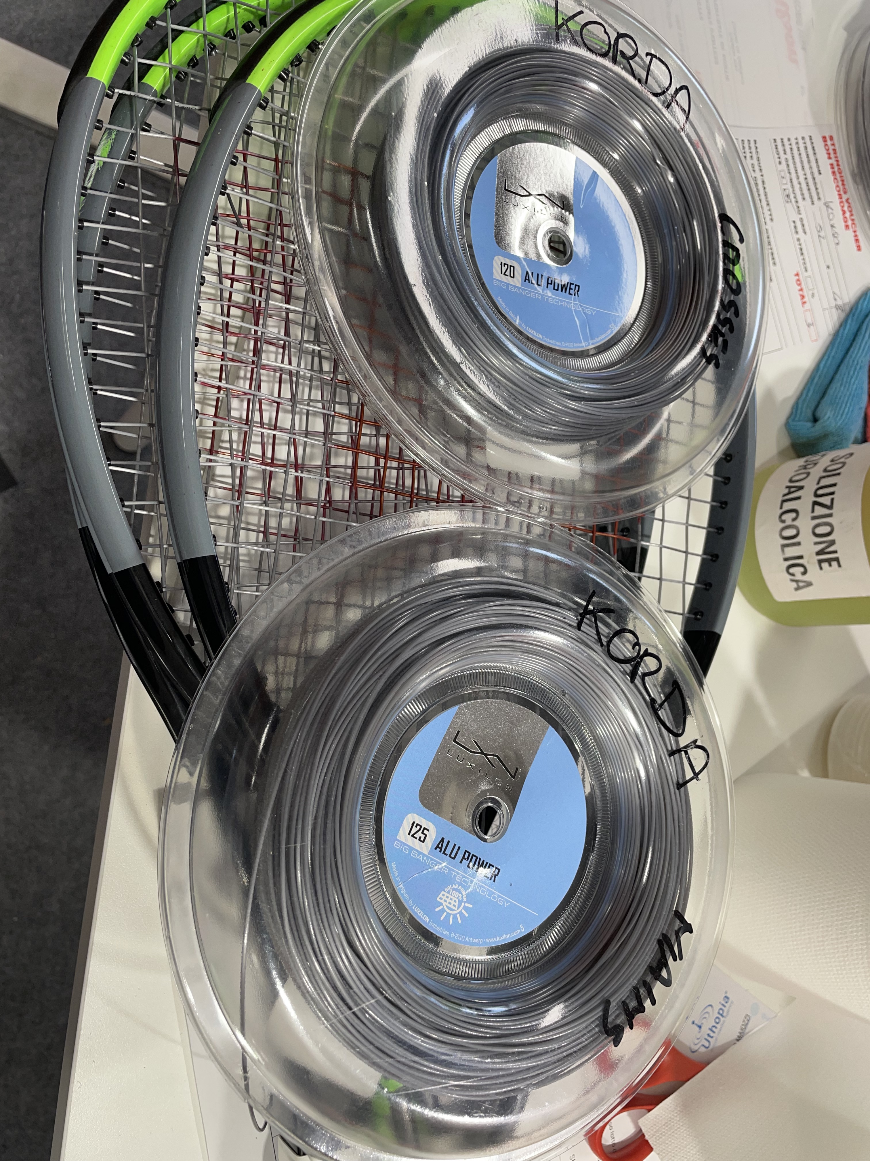 Anche Lorenzo Musetti punta sull’ibrido: dopo aver momentaneamente sospeso i test sul nuovo attrezzo, sempre sviluppato da Head, che dovrebbe supportarlo nel 2022, il giovane azzurro si è fatto preparare le sue quattro Head Extreme gialle e grigie con il mix ibrido preferito: Head Hawk Rough calibro 1,25 sulle verticali, Head Lynx Tour 1,25 sulle orizzontali. Tensione: 24 kg. Così attrezzato andrà a sfidare Korda per un posto in semifinale.