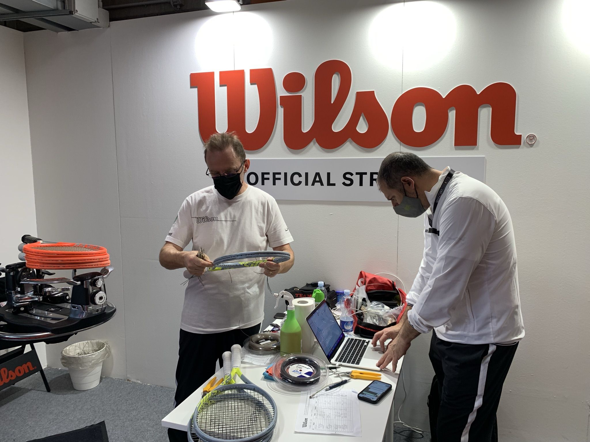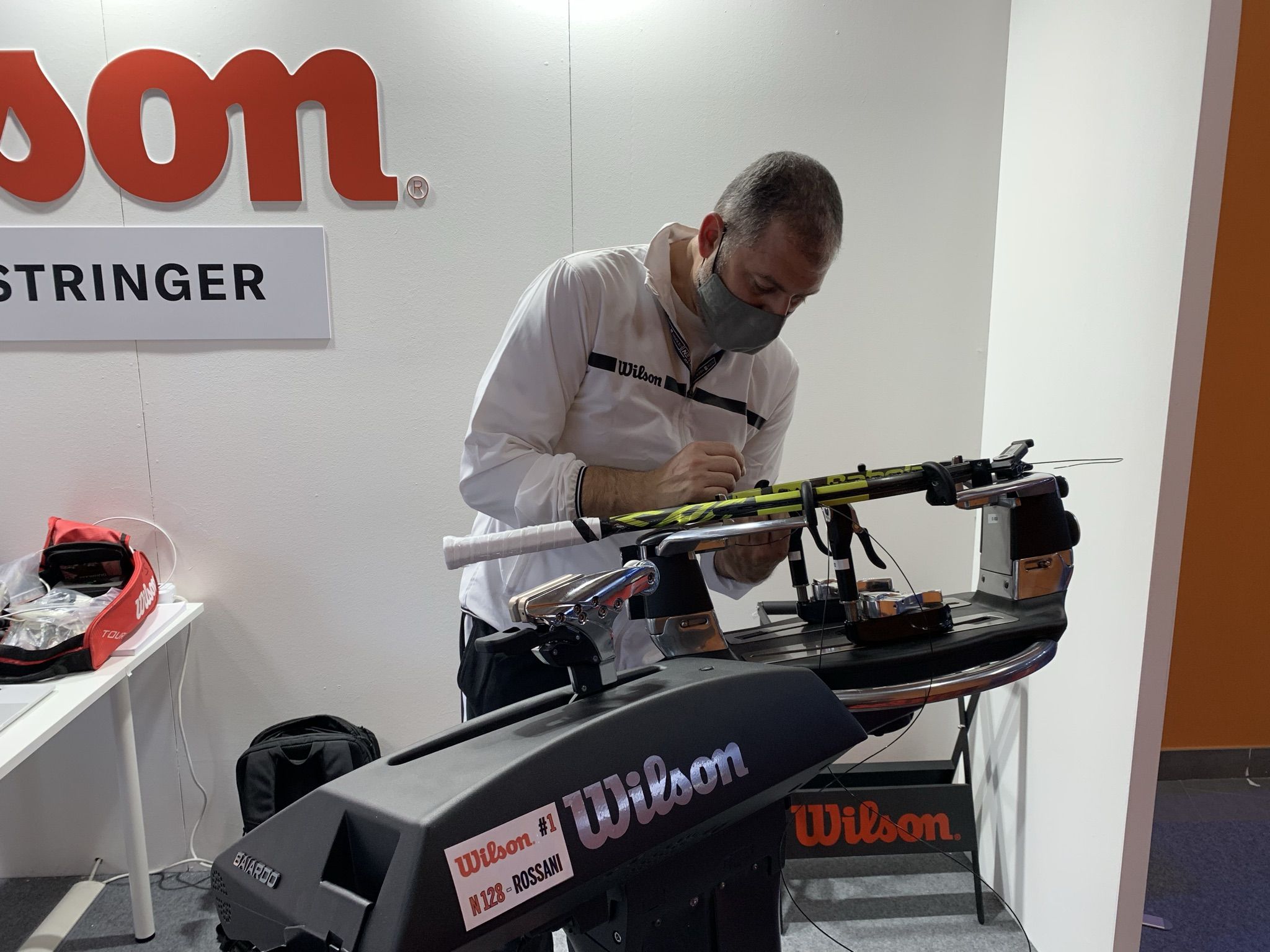 All’Allianz Cloud c’è un punto di passaggio obbligato per tennisti, coach e racchette: lo stand degli incordatori ufficiali Wilson, una piccola task forse guidata da Marco Rossani (responsabile anche degli stringer agli Internazionali d’Italia) che si occupa di preparare gli attrezzi per i match.
