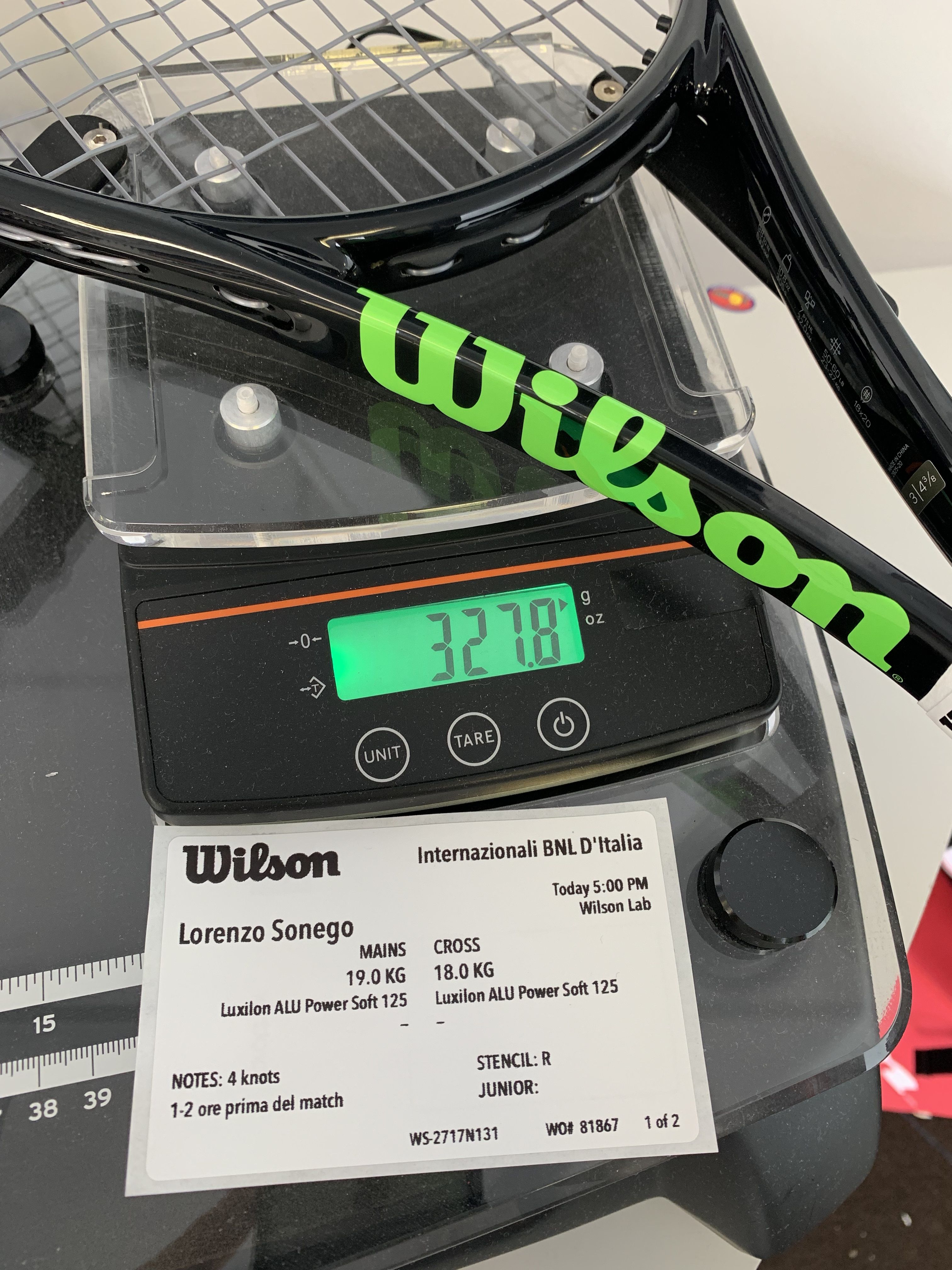 Marco Rossani e Christian Famà hanno poi messo l’arma di Sonego sulle apparecchiature test e ci hanno permesso di scoprire che le sue racchette personalizzate sono molto molto simili a quelle di serie.