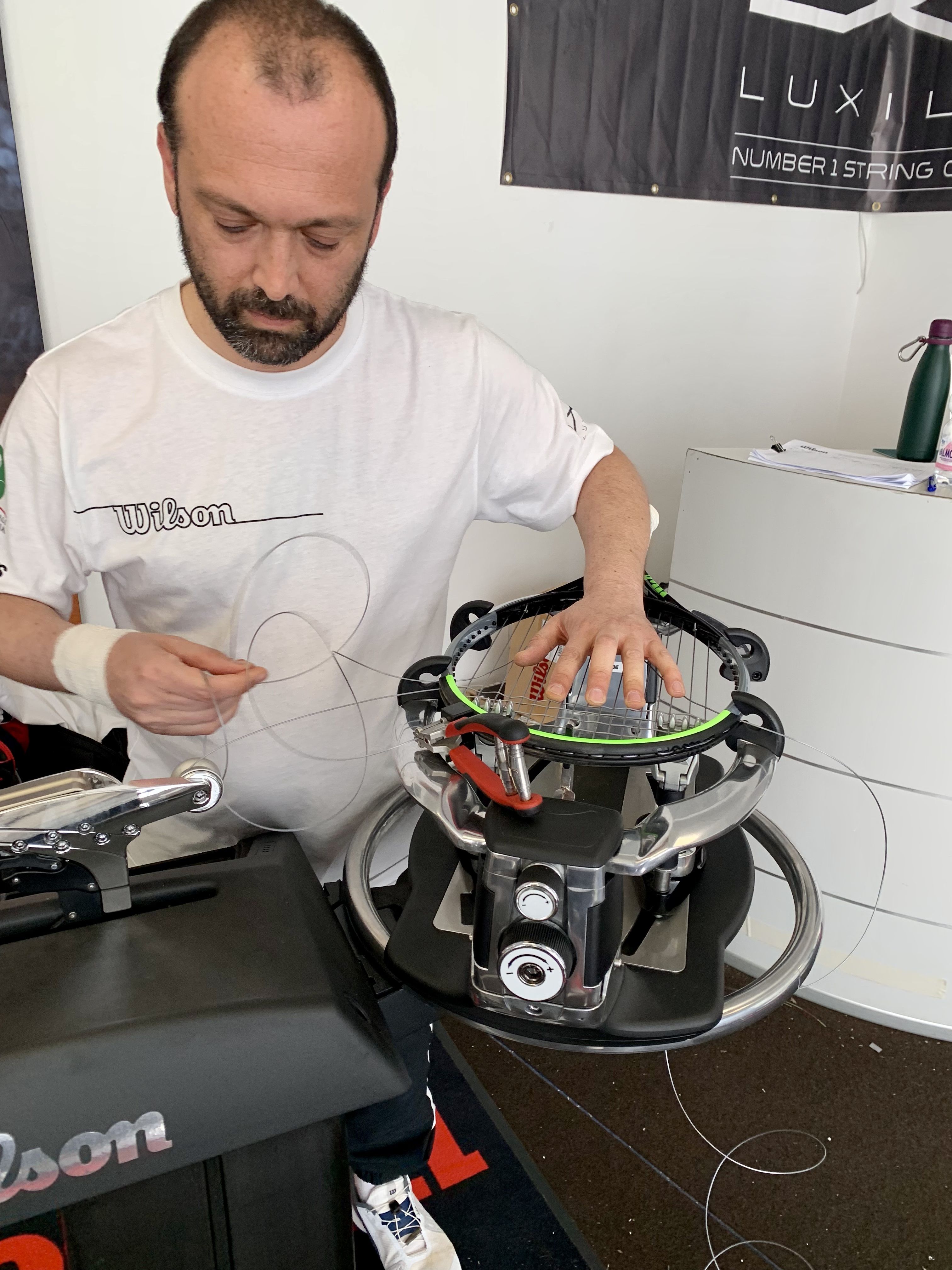 E’ organizzato così il lavoro del gruppo targato Wilson e guidato da Marco Rossani, lo stringer milanese che fa parte orami da anni anche della squadra ufficiale di Wimbledon: le racchette di un giocatore (o giocatrice) vengono affidate sempre allo stesso stringer, in modo da fornire all’atleta la massima uniformità nella preparazione dell’attrezzo sulla base delle specifiche di corda, lavorazione e tensione richieste.
