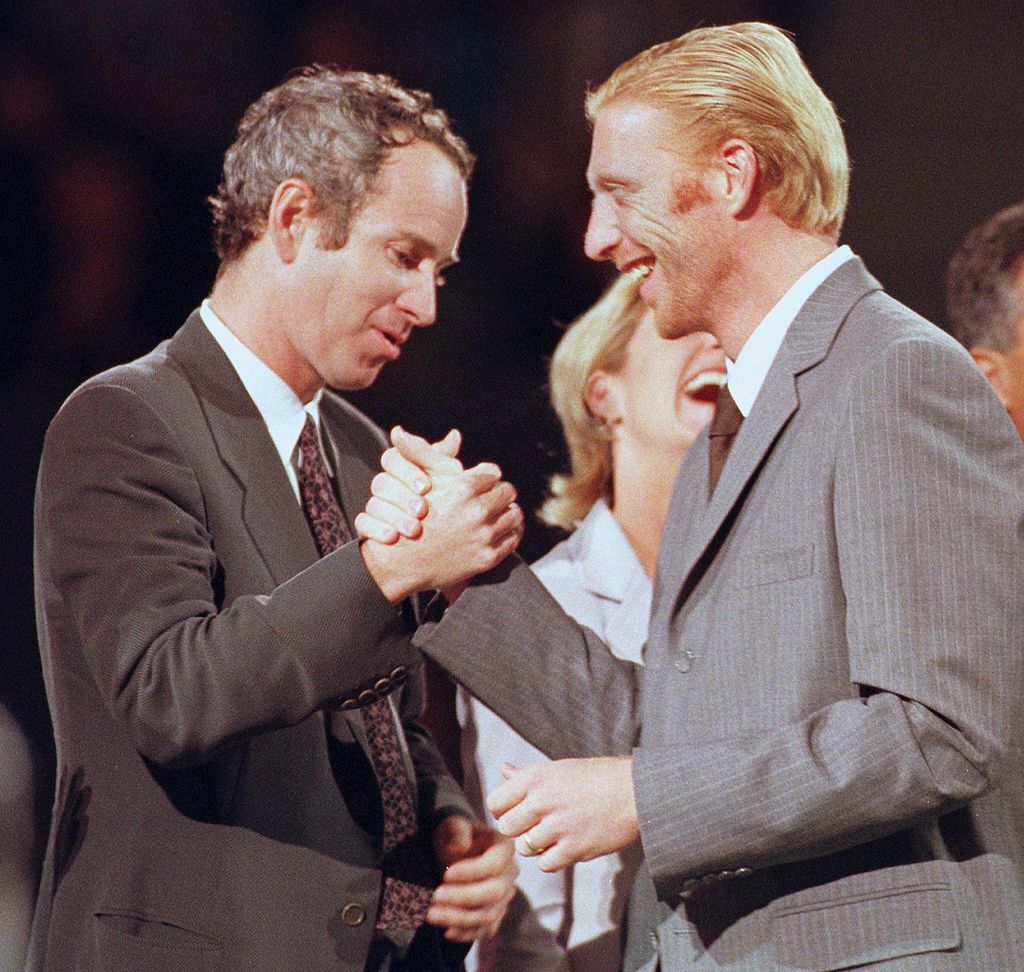 John McEnroe, a sinistra, e Boris Becker nel 1990 (Getty Images)