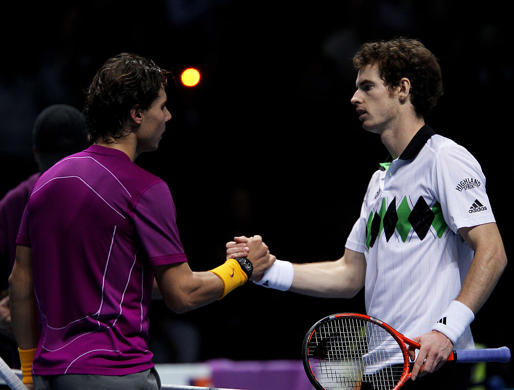 La stretta di mano tra Nadal e Murray dopo la semifinale alle Nitto ATP Finals 2010 (Getty Images)