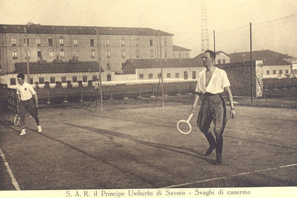 Sicuramente tra gli amanti del gioco del tennis va annoverato anche il Principe di Piemonte Umberto di Savoia, ultimo re d’Italia, che spesso si cimentava in partite alla Caserma Montegrappa di Torino con ufficiali del 92° Reggimento Fanteria.