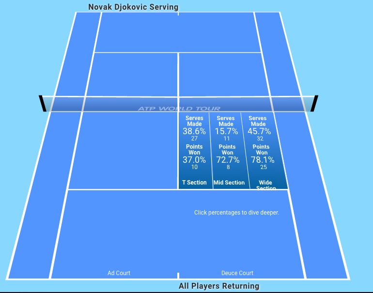 Guardando Nole, vediamo il prototipo del tennista moderno. Lui è il migliore, e lo è stato per un bel po' di tempo. Ma per apprezzare Novak in modo completo il miglior punto d'osservazione non è la sezione di campo dove si trova lui, ma l'altra. Lì si può notare come il suo avversario faccia tremendamente fatica a cercare di esprimere il proprio miglior tennis. Djokovic riesce soprattutto a far giocare male i suoi avversari.