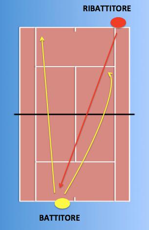 Allena anche tu questo schema: servi slice a uscire e prova a giocare un colpo d’attacco lungolinea con il diritto o un vincente nella parte di campo libero (vedi Figura A).