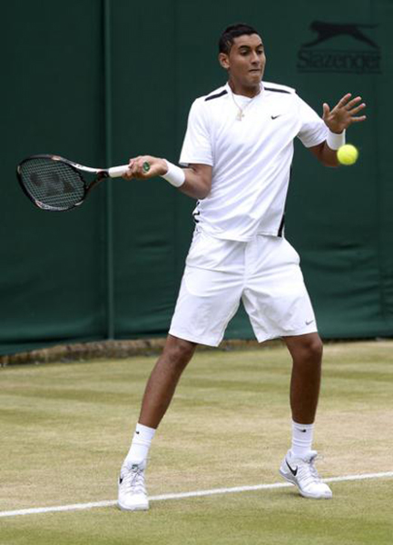 Con la presa western di diritto il palmo della mano è disposto sotto il manico, come nel caso di Nick Kyrgios (immagine a lato) e tale assetto comporta notevoli difficoltà nell’applicazione della forza. Molti ‘pro’ riescono attraverso il grip western a produrre un’elevata velocità della racchetta attraverso una combinazione di “momentum angolare” generato dal tronco, intrarotazione del braccio e deviazione ulnare della mano.