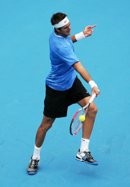 Per contro, durante la fase di accelerazione l’angolo di flessione del gomito è accentuato e può limitare la traiettoria orizzontale dell’attrezzo rendendo “l’arco dello swing” troppo severo. I maggiori gradi di libertà di movimento della mano da un lato incidono in misura rilevante sulla produzione di complessità di palla, dall’altro comportano difficoltà nel contenere l’ampiezza del movimento di preparazione.